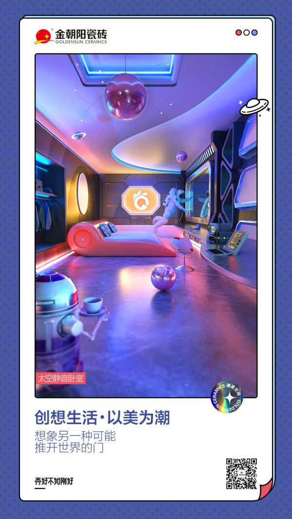 金朝陽瓷磚正是緊跟國際潮流,以全新的姿態,挖掘產品附加價值,用營銷破圈的思路,深度植入新鮮有張力的人居新理念,用讓人眼前一亮的充滿意趣的次元潮空間喚醒當代消費者更期待的生活向往。