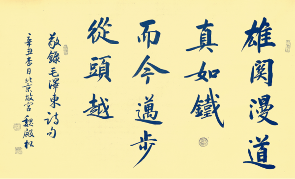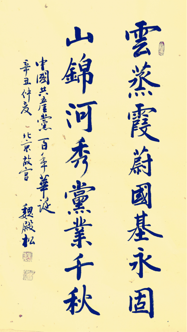 作為北京故宮博物院走出的書法家,多年來魏殿松學(xué)習(xí)研究并倡導(dǎo)宣傳皇宮“館閣體”書法,其作品富有端莊厚重、中正平和、清華朗潤(rùn)的特點(diǎn),他也被許多專家學(xué)者譽(yù)為,新時(shí)代弘揚(yáng)傳播“館閣體”書法的代表人物。