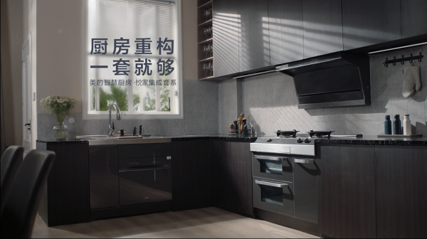 配色統一、墻面整潔、功能分區,這三點如何快速滿足?美的智慧廚房·悅家集成套系多種廚電選用經典雅灰一體集成設計,顏色統一不雜亂,加上極簡線條,快速打造風格高級有質感的廚房。