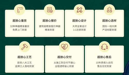 此次升級的超放心交付服務可以使屋主從施工到交付都不需要操心,全程裝修價格都會透明,讓屋主省心省力省錢。最后還會有超放心售后10年質(zhì)保入合同,即便裝修完,也會有專人追蹤為屋主解決煩惱。
