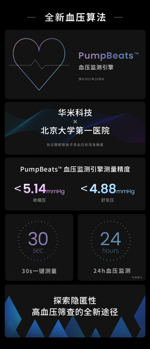 7月13日下午,華米科技在合肥舉行The Future of Health·Next Beat 2021大會,推出了新一代自研可穿戴設備芯片黃山2S、自研可穿戴操作系統Zepp OS,以及PumpBeats血壓監測引擎。