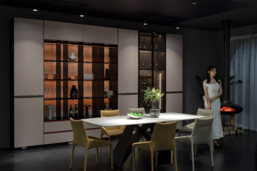 新品更加注重細節和材料質感,引入了皮革、金屬、玻璃等跨界材料,使整個產品設計更有調性;燈光系統、色彩搭配、智能產品的運用,豐富了體驗感。