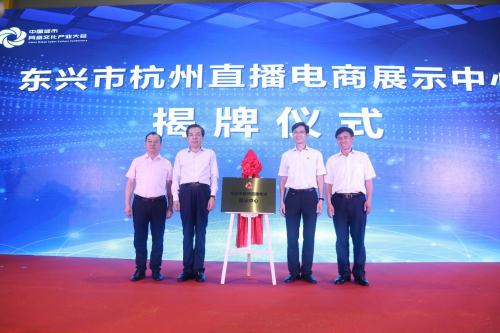 論壇現(xiàn)場,進(jìn)行了東興市杭州直播電商展示中心揭牌儀式,寓意著東興市與中國城市網(wǎng)絡(luò)文化產(chǎn)業(yè)大會(huì)的合作發(fā)展更進(jìn)一步,也寓意著東興市的直播電商產(chǎn)業(yè)將更上一層樓。