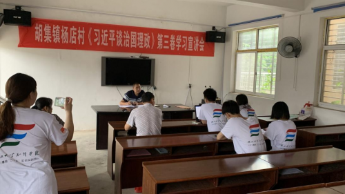 (圖片為團隊成員參與加強黨的政治理論教育宣講會,正前方是楊店村支部書記)