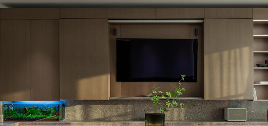他說“在空間里,我們并不是無時不刻使用功能。當某個功能被短暫使用完的時候,如果它太有存在感,它就懟住了視線,造成了感官上的堵塞,影響了內啡肽的分泌,讓我們不夠從容。”