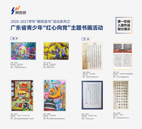 2020-2021學(xué)年“朝陽讀書”活動(dòng)系列之廣東省青少年“紅心向黨”主題書畫活動(dòng)是由廣東省教育系統(tǒng)關(guān)心下一代工作委員會(huì)聯(lián)合廣東《文化參與報(bào)》大美術(shù)周刊、“賽咚咚”賽事平臺(tái)舉辦的主題書畫活動(dòng)。據(jù)了解,廣東省青少年“紅心向黨”主題書畫活動(dòng)投稿熱情“嗨翻”了學(xué)生的整個(gè)暑假,全省學(xué)校/藝培機(jī)構(gòu)學(xué)生掀起了美育藝術(shù)創(chuàng)作大熱潮。