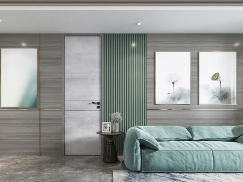 一步一景,步步皆成趣。「醉曲風荷」系列以高光飾面的西湖花色+科技木洛薩灰影為基底,融入莫蘭迪色系的水碧山青、莫蘭迪粉,與金屬質感的裝飾相互輝映,跳脫華麗的外觀,調和出柔中帶剛、老少皆喜的空間。