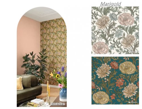 淺淺的粉色、嫩黃色、滿滿的少女感,每一朵花,每一片葉子,都有靈動的姿態,仿佛在隨風搖曳。亦或是鼠尾草綠與墨藍色相結合,營造出深沉懷舊的復古感。