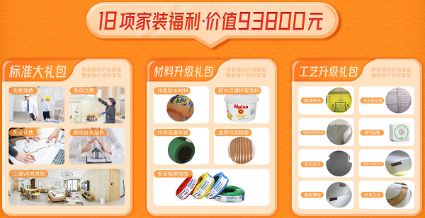 1、標準大禮包:始終以消費者的利益為核心,是滬尚茗居成功“出道”的關鍵。此次活動期間,滬尚茗居為簽約整裝的業主帶來了3免(免管理費、免設計費、免服務費)、質保延長服務以及免費三維VR效果圖的優惠大禮包,把家的服務做到極致!