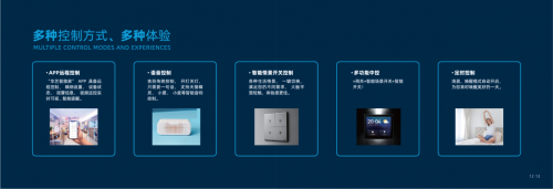 負責人還講到,該系統可通過app遠程控制、語音控制、智能開關控制等5種方式進行調控,與現代、輕奢、新中式等各風格智能燈具、智能電動窗簾等產品形成互聯后,總體響應和反饋靈敏出色,實現牽一燈而動全屋的效果。