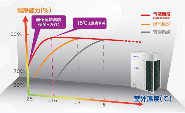 一臺好的壓縮機,將輕松驅(qū)動整個空調(diào)系統(tǒng),機器制冷(熱)效果顯著且穩(wěn)定。強勁的制熱功能,一直都是三星中央空調(diào)的性能亮點,經(jīng)過技術(shù)不斷的升級,推出高效的氣液增焓技術(shù)。