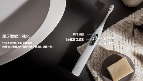 以O(shè)clean歐可林智能牙刷為例,作為智能牙刷的引領(lǐng)者,Oclean歐可林在旗下產(chǎn)品中加入了屏幕交互功能,能夠在用戶(hù)清潔之后實(shí)時(shí)反饋刷牙結(jié)果等信息,并借助機(jī)身內(nèi)置智能傳感器,通過(guò)對(duì)用戶(hù)刷牙時(shí)的手勢(shì)、位置、時(shí)間、力度等數(shù)據(jù)進(jìn)行大數(shù)據(jù)計(jì)算,將刷牙結(jié)果以圖形方式顯示在屏幕上,白色區(qū)域表示有效刷牙,藍(lán)色則表示無(wú)效刷牙或者刷牙不到位,通過(guò)可視化互動(dòng)提醒用戶(hù)補(bǔ)刷或者下次刷牙時(shí)重點(diǎn)關(guān)注。
