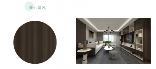 花色解讀:天上一輪月,湖中影成三。以熟褐色帶來厚重質感,描繪一幅滿載而歸的豐收秋圖。用淺色木紋勾畫出天色的朦朧美,結合中國傳統紋樣的水波紋,勾勒湖面的蕩漾波光與寧靜沉影。三潭、遠山、長天,好一派“浮云秋水共天長”。