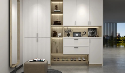 在千年舟提供的全屋易裝服務中,客戶可全程參與,將有門店設計師上門量尺,根據個人定制喜好、戶型布局、空間等擬出效果圖。同時,千年舟將會幫助您最大化利用空間,是小戶型的福音。最后,千年舟應用整裝集成木作系統,所有木質家居產品(室內門、踢腳線、全屋定制、衛浴柜,護墻板等)通過系統化家居設計和產品集成,做到風格、材質、顏色、品質一體化,一條風格主線貫穿每個功能空間和產品,無拼接痕跡,從而打造別具一格的美學效果。