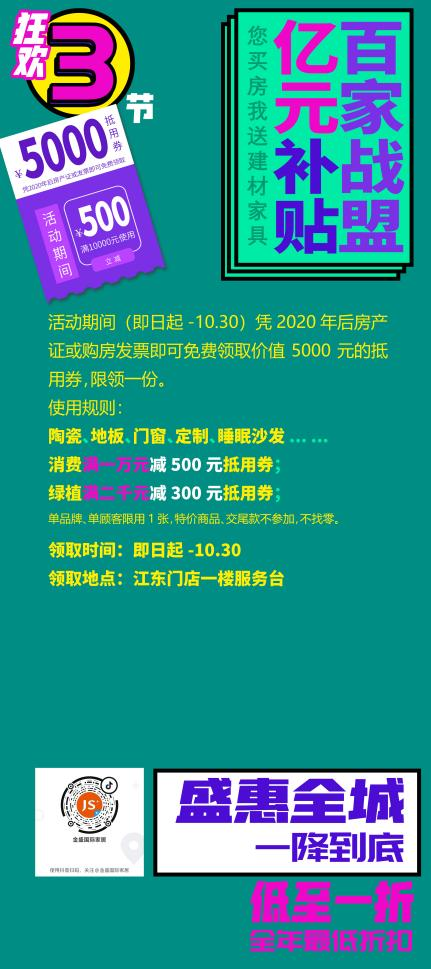 活動期間,福利狂發(fā),除了各種品牌超值活動,金盛江東門廣場還發(fā)放百億補(bǔ)貼!憑2020年后房產(chǎn)證或發(fā)票即可免費(fèi)領(lǐng)取價值5000元的抵用券,禮惠全城,掀起新一波高潮!