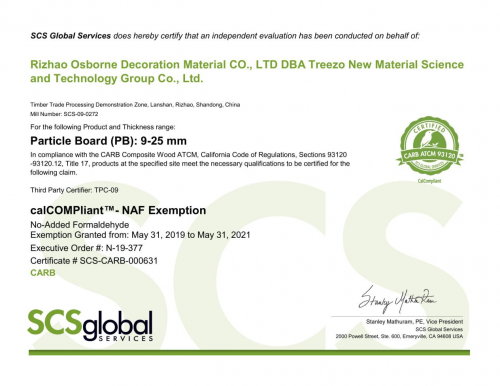 澳思柏恩生產出的成品板材甲醛釋放量≤0.060mg/m3,達到企業Q/HHM-2018標準E0級,優于國家標準規定≤0.124mg/m3的E1級標準,并且通過美國CARB、日本F☆☆☆、EPA美國環境保護局和FSC森林管理委員會等多項嚴苛認證,得到眾多國際認證的認可。