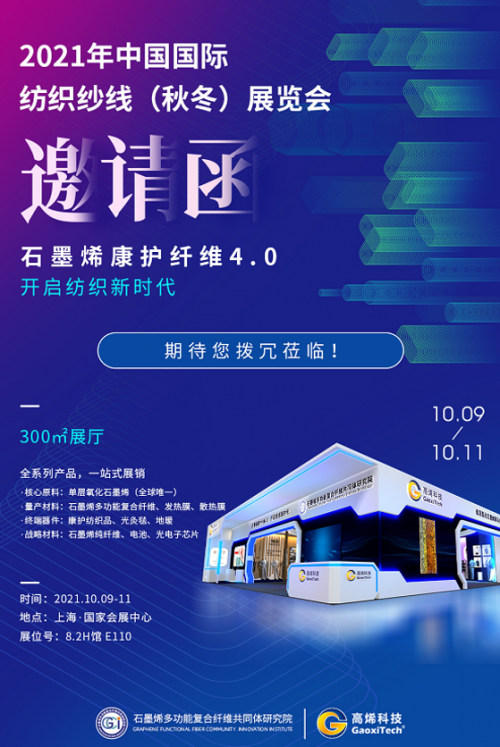 論壇現場將正式啟動石墨烯康護纖維標準制定,發布石墨烯康護纖維標準吊牌,還有兩場重要主題報告:1.浙江大學 高超教授《石墨烯康護纖維的創制與共享》2.北京服裝學院 王陽教授《從標識到共識-中國石墨烯多功能復合纖維標識設計大賽解讀》論壇講本著“共建烯標準,同創烯未來”的精神向行業伙伴開放,共同推動中國石墨烯行業的健康發展。論壇時間:10月9日 15:30-17:00。地點:紡織材料創新論壇(8.2H館-H138)