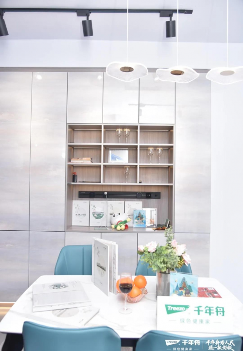 千年舟人文西湖系列創(chuàng)意家居產(chǎn)品以西湖十景為創(chuàng)作背景,攫取勾、皴、擦、染、點(diǎn)的水墨技法,將西湖四季美景與人文美學(xué)在板材飾面上進(jìn)行糅合、重組、創(chuàng)新,讓西湖風(fēng)物之雅致移景入戶,打造一柜一景的家居意蘊(yùn),將西湖的詩意融入家居設(shè)計(jì),完美糅合了江南文化與現(xiàn)代木文化,賦予了現(xiàn)代人居濃厚的文化底蘊(yùn),演繹出了新一代國(guó)潮家裝之美。「醉曲風(fēng)荷」代表了夏季,為些許寒意的西安掀起陣陣暖浪……