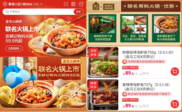 農(nóng)耕記聯(lián)合盒馬推出“有料火鍋”系列,加熱5分鐘就能吃