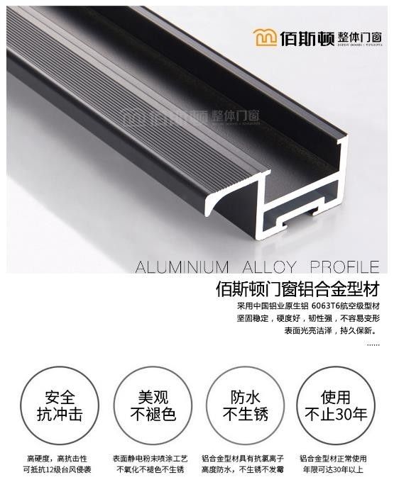 佰斯頓整體門窗率先執行GB/T 8478-2020標準,并采用了優質的T6063原生硅鈦鎂合金鋁材,擁有密度小、強度高等特點,在外力的作用下也不會輕易變形。厚實的邊框保證了隔音效果,另一方面又提高了門窗的穩定性,增強門窗的使用壽命。