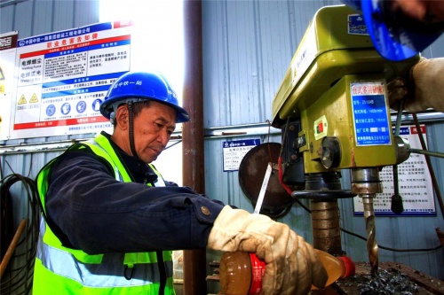 “以前給鋼板鉆眼都是拿手扳鉆,一個(gè)小小的鋼板孔就要十幾到二十分鐘才能鉆透,現(xiàn)在不到一分鐘就能搞定的,方便地很哩…”