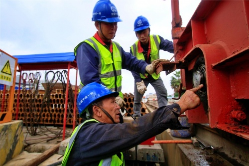 但今年項(xiàng)目復(fù)工生產(chǎn)以來(lái),漆成平所帶領(lǐng)的機(jī)械加工班,從來(lái)沒(méi)有叫苦叫累。期間,無(wú)論刮風(fēng)下雨、白天黑夜,亦或是鉆到洞子,爬上十幾米高的門吊,他們總是奔走在急難險(xiǎn)重的施工線上,而他們也總是不負(fù)眾望,屢挑重?fù)?dān)。