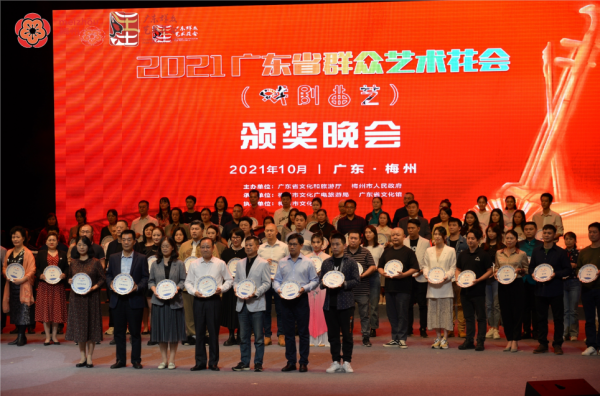 藝術花開,滿城芬芳。10月29日,2021廣東省群眾藝術花會(戲劇曲藝)閉幕式暨頒獎晚會在梅州舉行!來自廣東省內21個地市和有關省市代表隊的共76支戲劇曲藝優秀作品在梅州切磋技藝、一較高下。經過為期5天7場的激烈比拼,廣州市大放異彩,6個參賽作品:戲劇類包括小品《火》、小品《鎖》、小粵劇《村道彎彎》,曲藝類包括廣東小調表演唱《荔灣緣中國夢》、粵曲子喉獨唱《天使的心愿》、數來寶《助你網紅》,斬獲4金1銀1銅,廣州市文化廣電旅游局獲得優秀組織獎,滿載而歸!