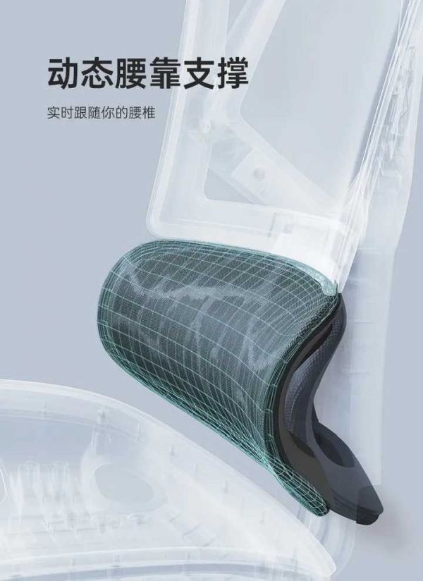 根據人體生理曲度科學分區,精準支撐,保護腰背,有效保持正確坐姿的同時,很好的考慮了用戶體驗舒適性,真正做到既矯正坐姿又不硌腰,舒適又健康。打破了傳統座椅腰部無法有效支撐的用戶痛點,根據腰部活動提供恰到好處的動態腰部支撐,有效緩解腰部壓力。
