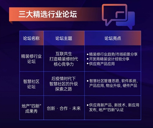 12月9日-10日,峰會現場將特設精裝修、智慧社區、地產“四新”成果秀三大專題論壇,共話行業新趨勢、共筑行業新未來。
