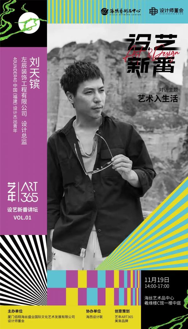 對話嘉賓·劉天鑌 左辰裝飾 聯合創始人 40UNDER40中國(福建)設計杰出青年 2016-2017年度國際藝創設計作品大賽(華鼎獎) 住宅公寓空間方案類金獎 ▲ 劉天鑌作品 設藝新番 四大美學館參訪共話 隨著海峽西岸的蓬勃發展,廈門也成為設計藝術交流的文化要地。位處機場的海絲藝術品中心可謂藏龍臥虎,也吸納了多家知名美學品牌的進駐。 本次活動我們還將參訪不二齋美學館、藝術曉島藝術館、衍藝圈藝術平臺、大掌柜國茶文化館四大美學館,由各大美學館主理人親自帶隊,促成到場設計師與藝術家的聯動合作。 ▲ 不二齋美學館 ▲ 藝術曉島——陳曉東藝術館 ▲ 藝術IP服務平臺——衍藝圈藝術平臺 ▲ 大掌柜國茶文化館 城市美學、藝術美學、品牌美學、空間美學,當跨界藝術融入空間設計,新潮與時尚、品味與格調,將是一場開啟現代美學的先鋒對話! 11月19日攜手設計藝術圈大咖,見證新番力量,【設藝新番】第一站,我們不見不散。 設藝新番 海西設計 X 藝術界講壇/互訪 活動流程 篇章一 | 新視角 14:00-14:30 簽到來賓交流 14:30 主持人開場 14:30-14:35 海絲藝術品中心介紹 篇章二 | 新藝聯 14:35-14:55 城市美學 主題演講 曾冠偉 14:55-15:15 藝術美學 主題演講 張亞濤 15:15-15:35 品牌美學 主題演講 楊韜 15:35-15:55 在地美學 主題演講 羅永堃 篇章三 | 新碰撞 15:55-16:25 對話沙龍 藝術入生活 嘉賓: 廣州設計周品牌創新院院長/設計師董會創始人 朱亮 衍藝圈藝術平臺 主理人 黃志敏 不二美學 主理人 藝術家 陳耿龍 左辰裝飾 聯合創始人 劉天鑌 16:35-16:40 海絲藝術品中心 X 設計師董會 設藝新番發布 篇章四 | 新認知 參訪海絲藝術品中心 四所藝術館 帶隊講解主理人: 陳耿龍 不二齋美學館 B館1F 陳曉東 藝術曉島藝術館 C館1F 黃志敏 衍藝圈藝術平臺 C館2F 林小娟 大掌柜國茶文化館 C館3F 日期:11月19日周五 時間:14:00-17:00 地點:廈門海絲藝術品中心 羲緣樓C館1F中庭 關于藝年ART365 “藝年ART365”線上平臺已正式上線運營,主營藝術原作、文玩工藝、藝術衍生和非遺精品,同時提供線上拍賣和藝術禮品定制服務。 關于設計師董會 設計師董會作為海西最活躍的設計及產業平臺,聯動建筑/室內、工業設計、視覺設計、藝術/多媒體機構等,背靠廣州設計周、好好住、交大文創等多家全國性平臺合作優勢,賦能產業創新升級。![]()