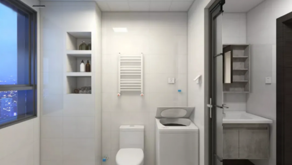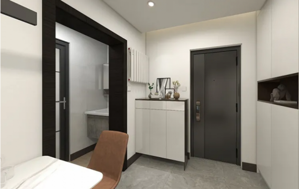 有意思的是,在玄關、廚房、餐廳和次衛連接緊密的位置,設計師沒在過道區設置柜子,反而將次衛中的洗手臺挪動到外部,這樣設計的好處是,既方便回家、用餐時洗手清潔,也將次衛進行了“干濕分離”,這正是一處相當有創意的“功能性”設計亮點。