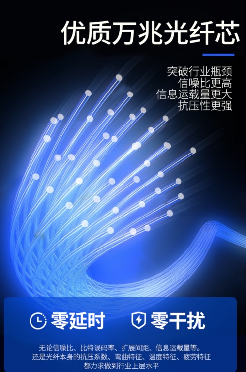 光纖HDMI線應運而生,光纖HDMI線對比傳統銅芯線,有著長距離無損傳輸、色彩還原準確、高刷新率、音頻高保真、高帶寬等的優勢。