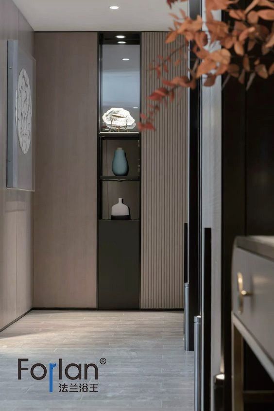 實用功能與藝術美感并存Forlan法蘭浴王壁龕,還與燈光設計相輔相成,由于壁龕是向墻內延伸的,光影問題就顯得尤為關鍵。如果是作為裝飾空間的設計,可以在壁龕的兩側設計內隱光,這樣可以突顯內部展品的全角度美感。在暖色燈光襯托下帶來濃濃的復古韻味,選擇冷色燈光則會更顯時尚韻味。在暗藏光的映照下,更好的襯托出陳列品的魅力,盡享輕奢品位。