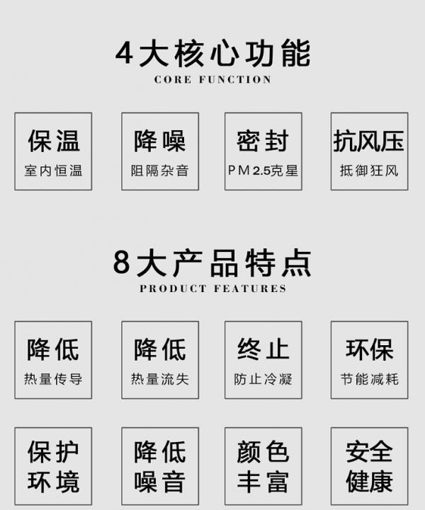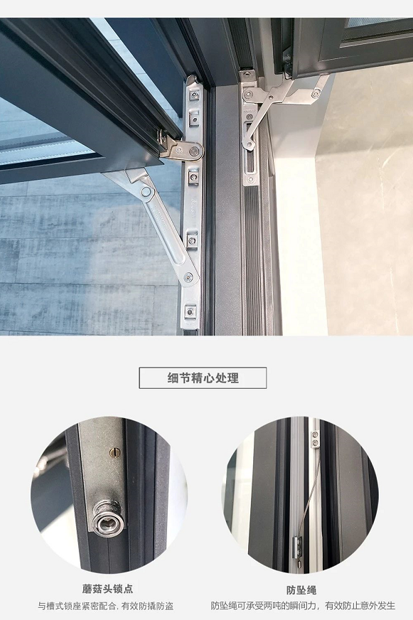 其次在款式上擁有多種設計風格和類型、材質采用氟碳表面處理工藝可以達到30年不變色,硬度高、耐磨損、抗腐蝕等優點,極大延長門窗整體的使用壽命。內部精密的機械傳動系統,保障了使用時的手感與順暢。