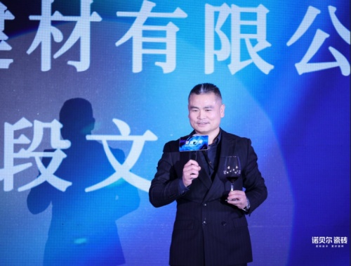 晚宴上,高級住宅與色彩研究領軍人物、北京居其美業住宅技術開發有限公司執行總裁戴昆和大家分享了他和諾貝爾瓷磚之間的溫情故事,風趣的語言,引得大家開懷大笑。