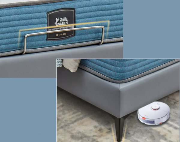 此款床采用13cm菱形金屬腳,極簡(jiǎn)的工業(yè)美學(xué)設(shè)計(jì),八腳支撐更加牢固穩(wěn)定,方便現(xiàn)代智能生活掃地機(jī)器人的清潔需求。床尾貼心設(shè)計(jì)了不銹鋼尾桿和可拆卸支架,讓床墊更加牢固,即使在床上打鬧也不移位。
