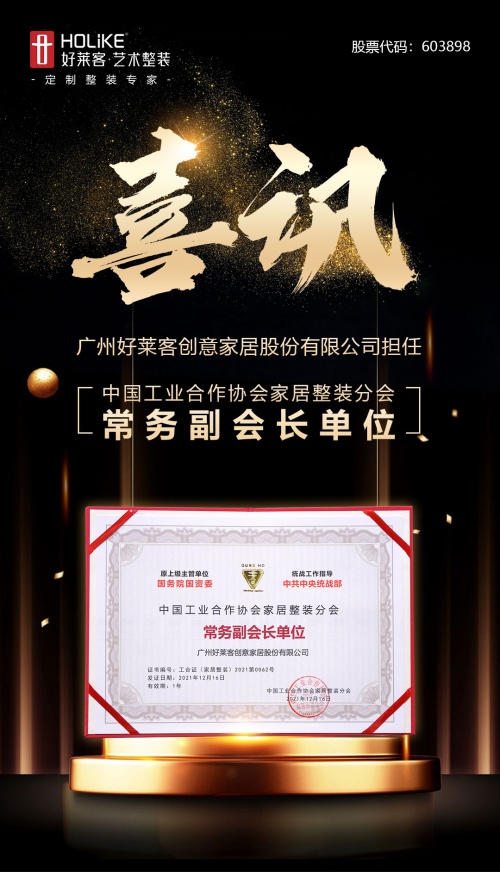 品牌硬實力 | 好萊客正式加入中國工業(yè)合作協(xié)會家居整裝分會并擔任常務(wù)副會長單位!