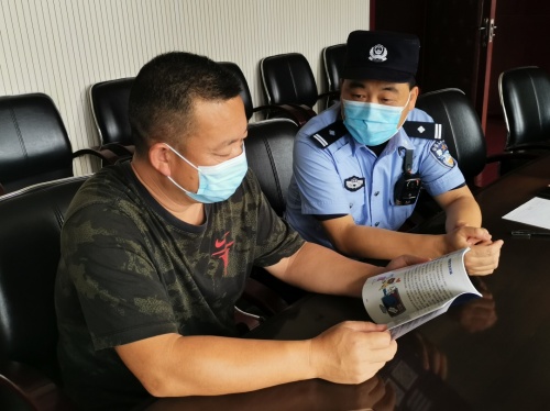 社區(qū)民警向企業(yè)負(fù)責(zé)人宣講反詐內(nèi)容