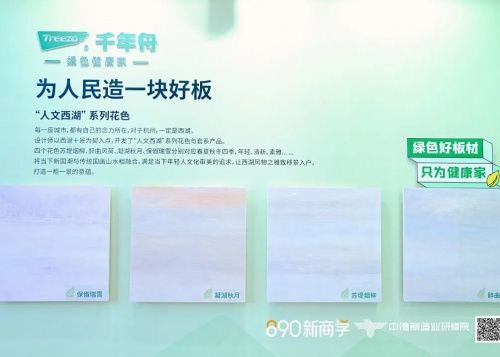 走進千年舟展區,迎面而來的是西子湖畔的「四季氣息」,千年舟21年新品「人文西湖系列」創意家居產品以西湖十景為創作背景,攫取勾、皴、擦、染、點的水墨技法,將西湖四季美景與人文美學在板材飾面上進行糅合、重組、創新,讓西湖風物之雅致移景入戶,打造一柜一景的家居意蘊,將西湖的詩意融入家居設計,完美糅合了江南文化與現代木文化,賦予了現代人居濃厚的文化底蘊,定義全新風格,演繹出了新一代國潮家裝之美。