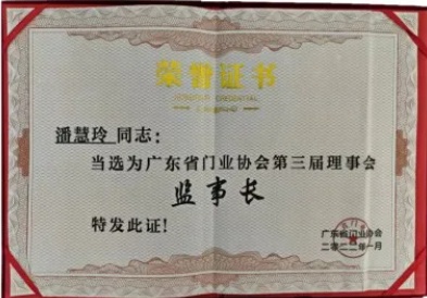 官宣!云華起磁懸浮董事長潘慧玲當(dāng)選為廣東省門業(yè)協(xié)會第三屆監(jiān)事長