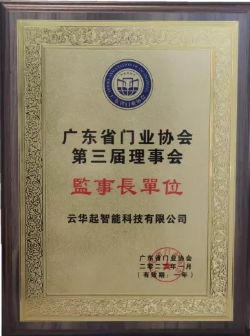 以及廣東省門業(yè)協(xié)會特授予云華起磁懸浮廣東省門業(yè)協(xié)會第三屆監(jiān)事長單位