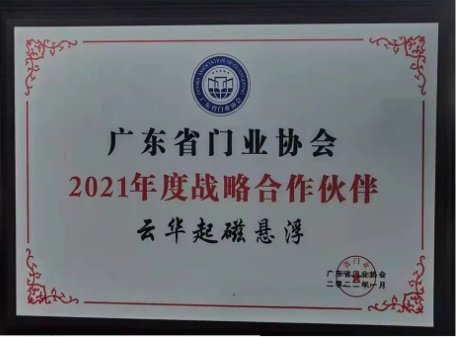 2021年以來,云華起磁懸浮不斷開拓創(chuàng)新,保持高標(biāo)準(zhǔn)高要求的產(chǎn)品質(zhì)量的同時以高質(zhì)量的服務(wù)反饋客戶,在行業(yè)內(nèi)好評如潮。廣東省門業(yè)協(xié)會特授予云華起磁懸浮金牌供應(yīng)商牌匾。