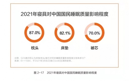 一條好的被芯不僅有助于促進(jìn)更好的進(jìn)入睡眠狀態(tài),減少失眠情況的發(fā)生,而且還能為人們睡覺的整個(gè)過程保駕護(hù)航。但由于消費(fèi)者對(duì)被芯重要性的意識(shí)程度不同,被調(diào)查者認(rèn)為被芯對(duì)睡眠質(zhì)量有影響的占比僅有70%,略低于枕頭和床墊的重視程度。