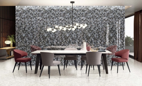 目前,博德精工玉石擁有霸王玉、精彩綻放、晶玉、翠晶、龍之菊、炫舞、暉等系列近百款產品,涵蓋了800x800mm、900x900mm和900x1800mm三大規格,紋理更豐富,質感更通透,在新中式、現代輕奢等裝修風格中的應用,往往能達到令人驚艷的效果。