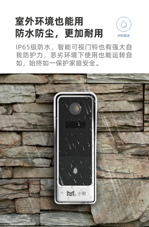 小默智能可視門鈴采用IP65級防塵防水技術,追求更高品質(zhì)要求的同時,適應中國更多的家庭戶型,從居民小區(qū)的家門口,到獨立小院的院門口,常年四季穩(wěn)定運行;值得一提的是小默門鈴標配大分貝室內(nèi)接收揚聲器,即使是家中嘈雜、房間隔音、距離院門口50米,室內(nèi)也可清晰地聽到鈴聲。