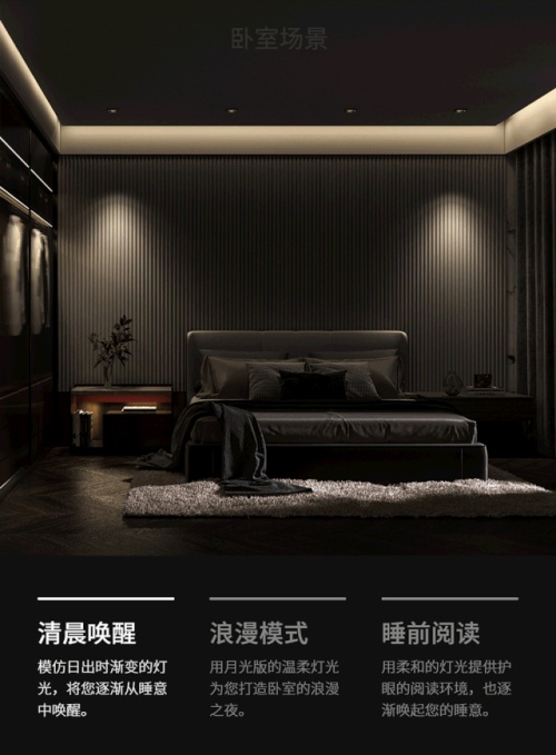 無主燈照明就是拋棄了又大又亮、天天罩在頭頂的主燈,用更多更具體的光源照亮我們希望照亮的空間,照明方式更加精準、具體,更加貼合實際使用需求。智能無主燈,在原有的無主燈基礎上,接入了小米智能芯片,提供了更多場景式的設定,并完美適配小愛音箱等產品,實現了語音控制燈光效果,科技感滿滿。