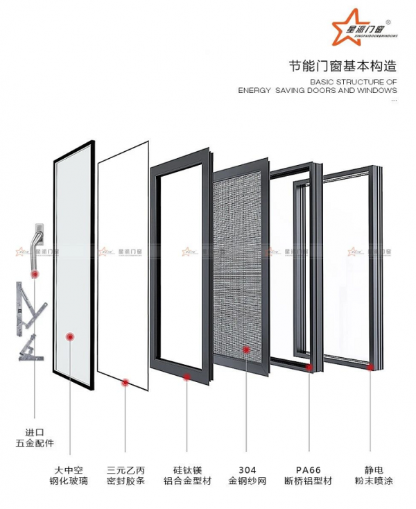 它同時精選三元乙丙膠條,耐老化,不褪色,密封好,保證門窗整體密封性能,隔音效果好。多級密封,多層密封,使冷風和外界的噪音無法穿透鉆探,達到完美的保暖隔音效果的同時減少聲音外泄,保障您的隱私。星派門窗在采光,隔音,保溫,節能等方面性能更加優異,讓你享受更加舒適的生活。為了實現更高的產品質量和生活體驗,星派門窗選用原裝進口五金,自主鋁合金生產線,使用國際先進工藝,從源頭處理密封框架結構安裝和使用的安全問題。采用標準化的測試和安裝,保障每一份產品的使用安全。
