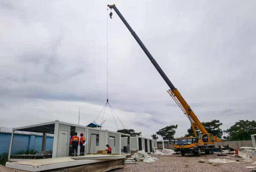 不等不靠,擔當作為,項目建設有序推進。初來乍到,剛果(金)項目無固定辦公居住營地,先遣隊8人,頂著炎炎烈日,親自動手開荒除草、搬磚、和水泥、砌墻、鋪石子,認真建設著屬于自己的新營地,2020年11月中旬首批鋼構件及六合易家裝配式房屋經過3個多月的海運陸續抵達剛果(金)項目現場,各項工程建設任務有條不紊展開。2020年12月初,一排排整齊的“六合易家”裝配式集成房屋營地拔地而起,施工現場各個鋼結構廠房建設穩步推進,項目部海外生產生活步入正軌。