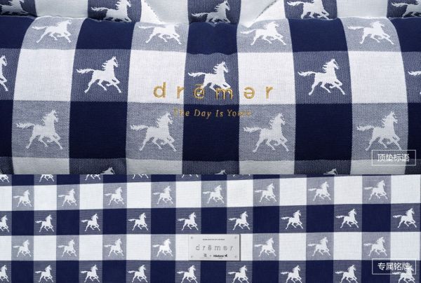 追夢床延續臻藏版生輝床優雅別致的設計風格和調性,選用同款面料,以海絲騰經典藍白格紋為基礎,格紋間配以紋花小馬圖飾,且有經典藍、極致黑、頁巖色和幻影灰四種顏色以供選擇。頂墊尾部點綴有“drēm?r,The Day Is Yours”(追夢者,每一天都屬于你)的標語,底座上的鍍銀黃銅銘牌刻有drēm?r字樣及海絲騰與設計師的logo,體現了海絲騰與設計師對定制細節的極致追求。此外,追夢床還可搭配擁有獨特嵌邊設計的床頭板,黑或藍兩種色調的定制漆木床腿,與任意臥室風格相得益彰。