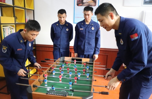 強化激發隊伍活力,優化心理疏導環境。堅持把心理疏導挺在"疫"線,將心理戰"疫"納入疫情防控整體部署,逐步建立完善戰時談心交心制度,開展心理評測調查,全面掌握隊員心理狀況、現實困難以及訴求。針對當前抗疫時間長、營區生活枯燥的特點,開展各類特色文體活動,讓隊員在活動中強化集體意識,提升積極性,增強隊伍活力。(文:歐陽小龍、丁海亮 攝影:孟德震)